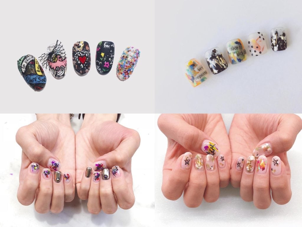 浮誇塗鴉型 若然你自認是個性女,不妨試試這種較為浮誇的塗鴉款式!這種美甲大多會使用多於5種色調,再畫出幾何圖案或線條作「底色」,之後再加上不同的字句十足十街頭塗鴉,玩味又別具型格!