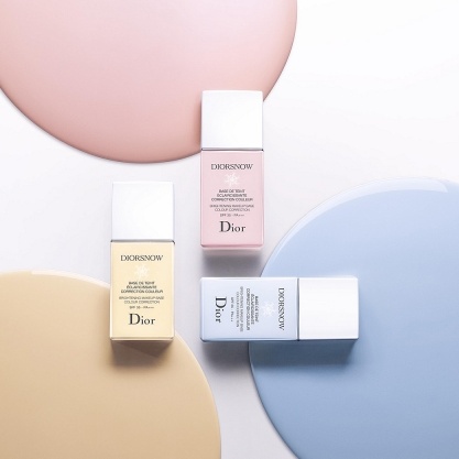 DIOR Diorsnow Colour Correcting Makeup Base SPF35 PA+++ 結合美肌晶鑽粒子,粉紅色底霜可即時提亮暗啞膚色,散發出自然粉嫩光采;粉藍色則調和暗沉,令肌膚展現剔透明亮光澤。