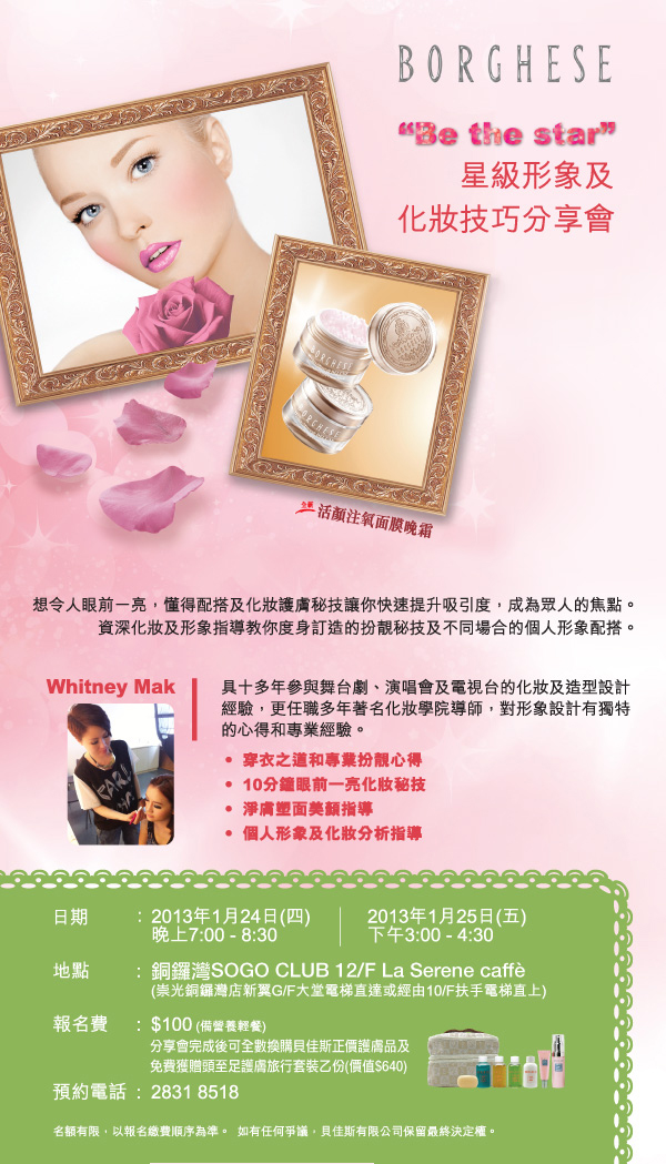 BORGHESE “Be the star” 星級形象及化妝指導分享會
