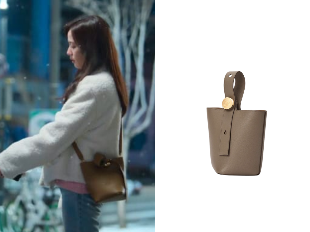 除了建築感強烈的經典款,Jisoo也在劇中背上了Delvaux俏皮圓潤的Pin Swing!這款水桶造型的名牌手袋擁有簡約的圓弧線條,風格比傳統包款更為年輕隨性。無論是手提、肩背或斜背都非常百搭,為徐未來的日常穿搭增添了輕巧活潑的氣息,是一款自然融入生活的實用名牌手袋。