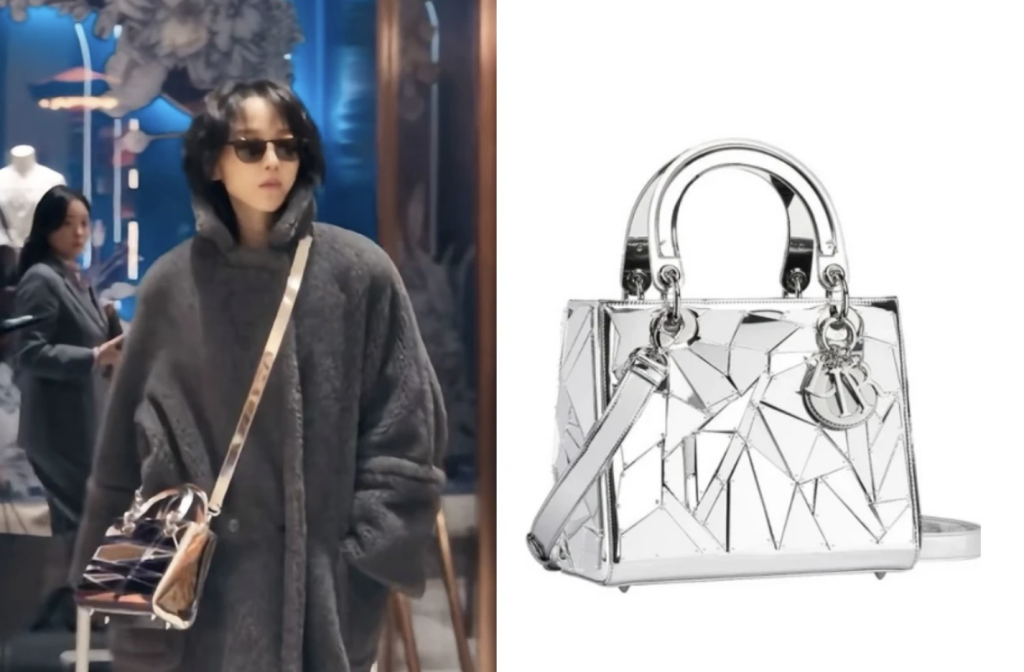 劇中最搶眼、討論度最高的名牌手袋,絕對非這款Dior Lady Art鏡面包莫屬!這款包是品牌與韓國藝術家李昢(Lee Bul)於2017年推出的聯名神作,將經典優雅的包款搖身一變成為能帶出門的藝術品。包身鑲嵌了數十片朝不同方向傾斜的壓克力鏡面,宛如一面巨大的破碎鏡子,前衛又吸睛!這款閃閃發光的名牌手袋不僅帶來「無限反射」的迷幻視覺效果,更完美呼應了主角金莎拉用謊言包裝的人生,折射出她對完美烏托邦的渴望與充滿幻象的虛構世界,一拿上手絕對氣場全開!