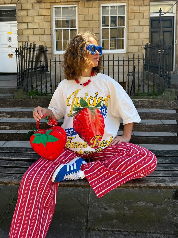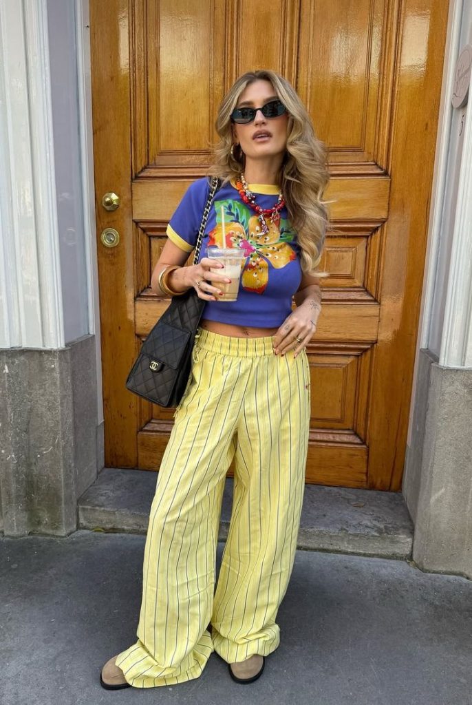 除了亮眼的色彩,浮誇又獨特的圖騰絕對是Portugal Girl Aesthetic穿搭的靈魂所在!葡萄牙女生熱愛將格紋、直條紋、童趣水果、大面積花朵及民族風圖案融入日常造型,更進階的技巧在於大膽混搭看似衝突的圖案,例如將粗幼或不同顏色的條紋單品互相拼搭。這種不拘一格的印花碰撞不但毫不違和,反而能精準拿捏Portugal Girl Aesthetic穿搭充滿活力、隨性又帶點復古的地中海渡假風情。